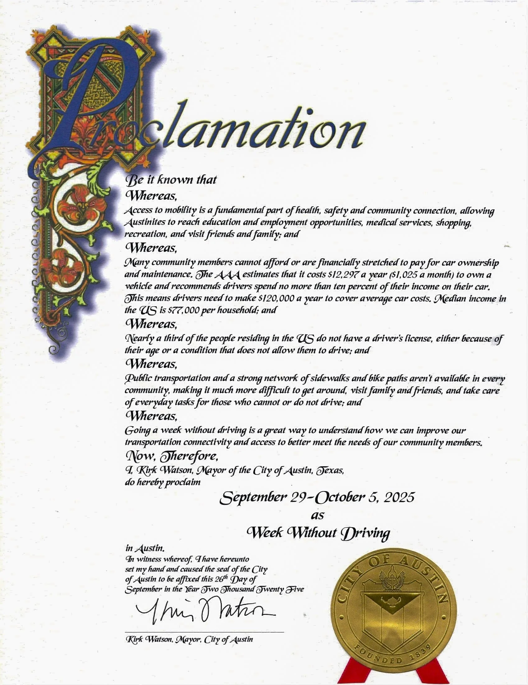 Take the #WeekWithoutDrivingATX challenge with us from September 29th to October 5th! Show us how you get around without driving for a week and the unique benefits and challenges you face. Let's spread awareness and push for accessible communities together!